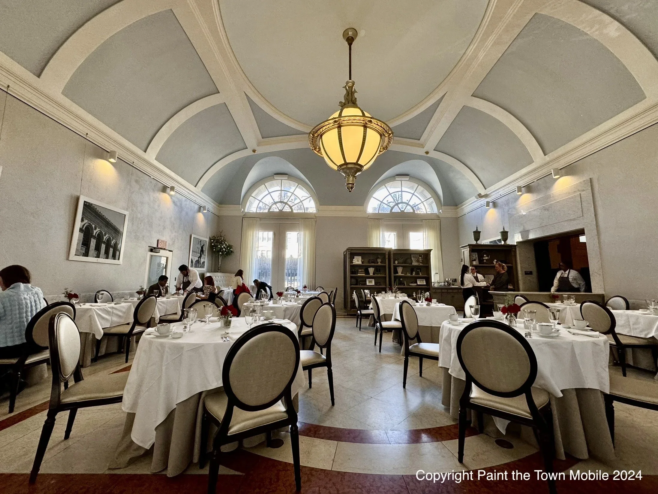 While I could have taken my scooter right up to the table, I wanted to charge it while we dined. The matre ‘d offered me an outlet in the large coat check area at the front of the restaurant, which I happily accepted, and I walked to our table.
